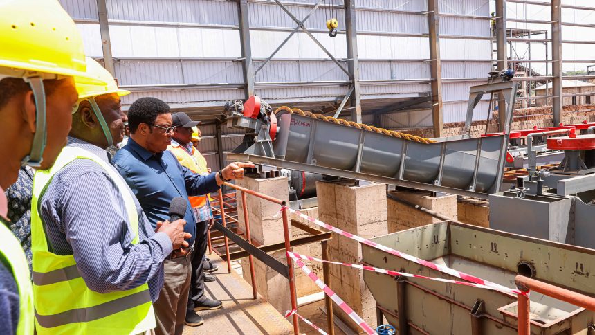 Waziri Mkuu, Kassim Majaliwa, akikagua uwekezaji wa Kampuni ya Huaer International Limited ya uchimbaji wa madini ya Bunyu (Graphite) iliyopo katika Kijiji cha Ng’au, Wilayani Ruangwa Oktoba 7, 2025. (Picha na Ofisi ya Waziri Mkuu)