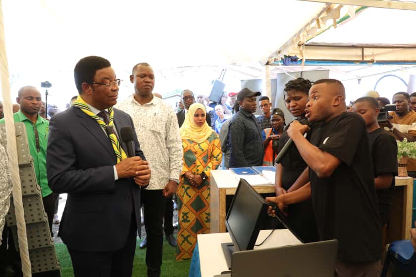 Katika banda hilo, Waziri Mkuu alikutana na Francis Anthony, mhitimu wa VETA ambaye kwa sasa ni mwalimu wa kompyuta. Francis alieleza jinsi alivyopata mafunzo na baadaye kuajiriwa kufundisha vijana wengine.